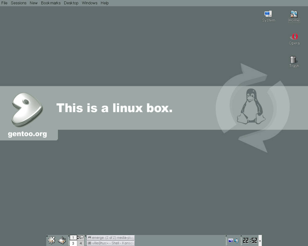 Let’s skip a few years. 2005 I successfully installed Gentoo somehow. I have proof: screenshot of my desktop I proudly uploaded to Deviantart with pimped out KDE and Gentoo background. During this time I remember also installing Debian successfully and struggling to get networking to work; going to nearest library where there was a working internet, reading guides, taking notes and going back to my computer to try things out.